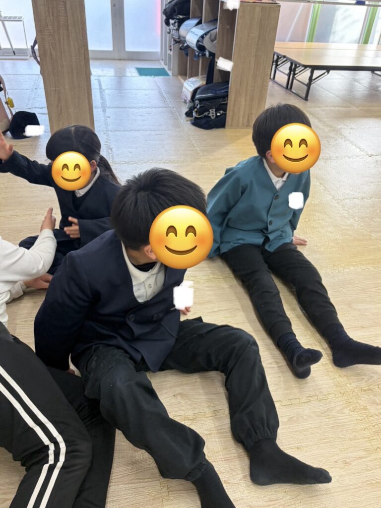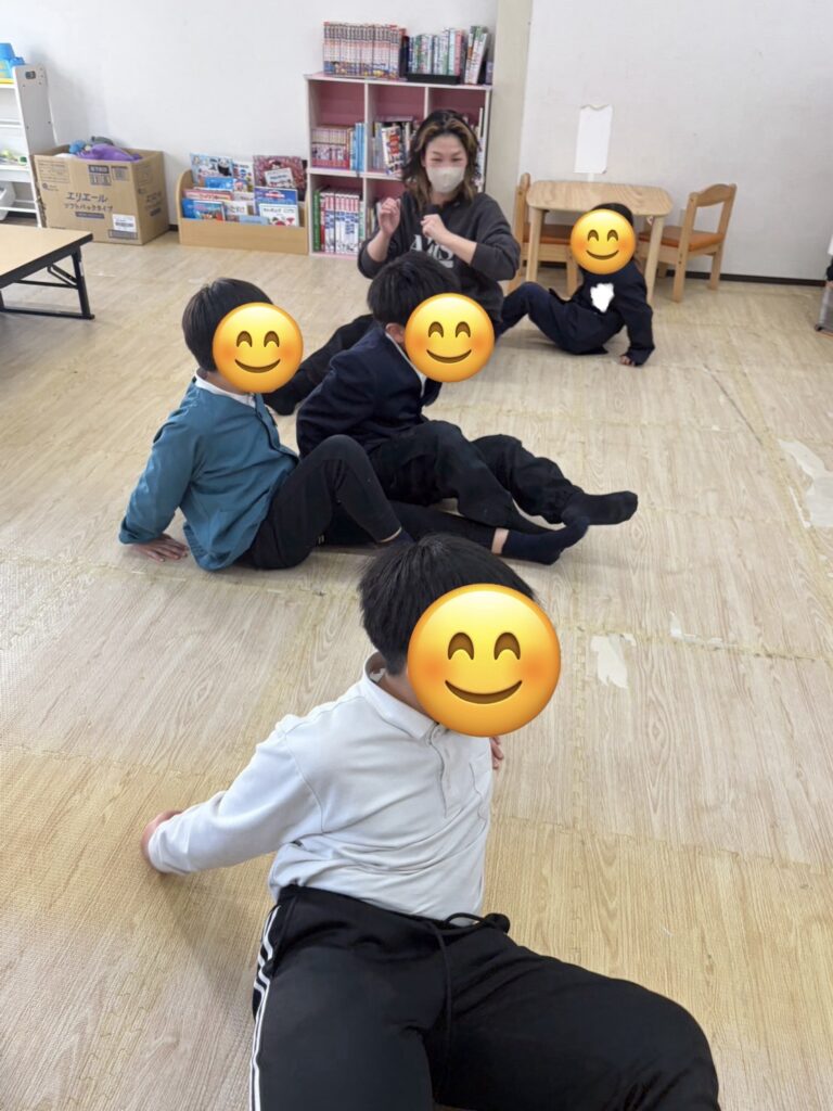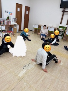 本日の集団活動は【爆弾ゲーム】と【お尻歩き鬼ごっこ】を行いました!