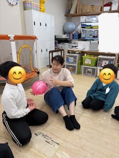 みんなで輪になり、タイマーに合わせてボール(爆弾)を順番に回していくゲームです😄