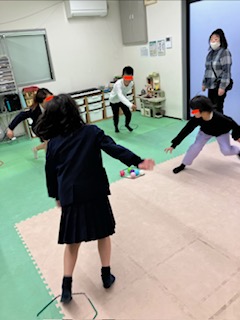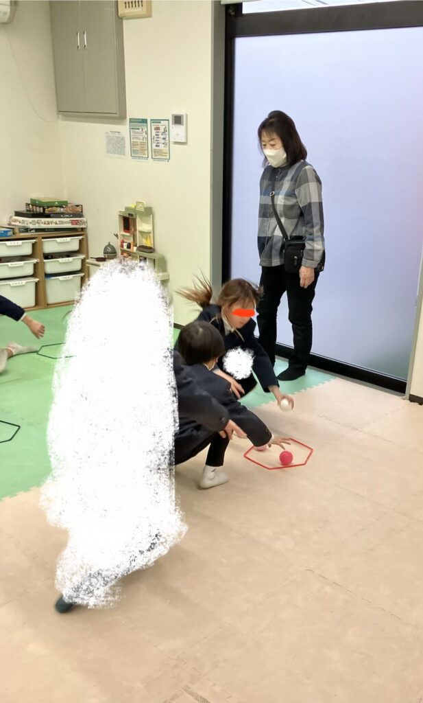 スタート!の合図と共に、真ん中の円から自分の陣地へ3つボールを集めます🥎