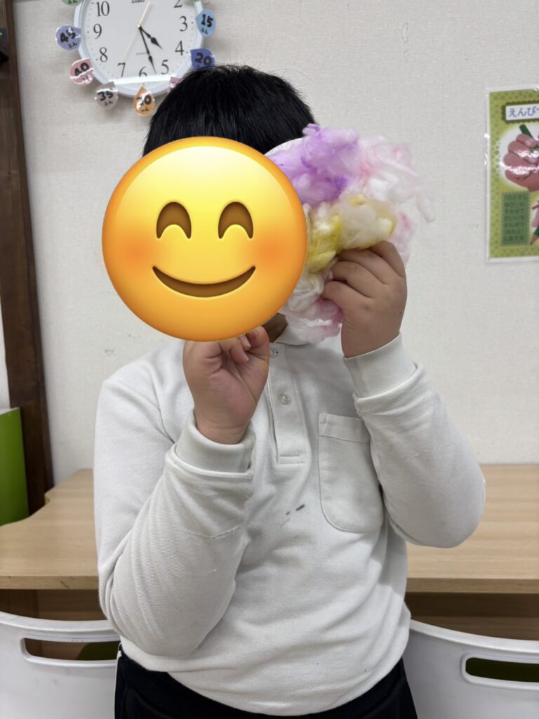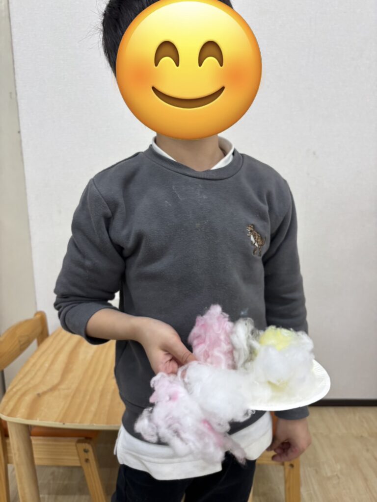 自分だけの、色綿をつかったお花の完成です😊🏵️