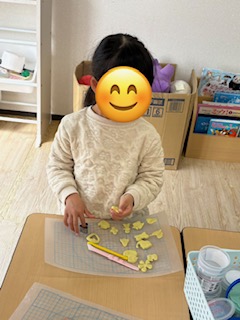 今日も粘土やスライムに夢中!混ぜたり型を取って楽しんでいます😊