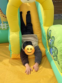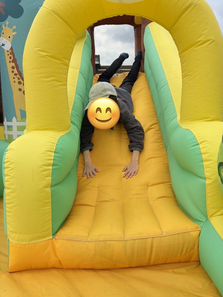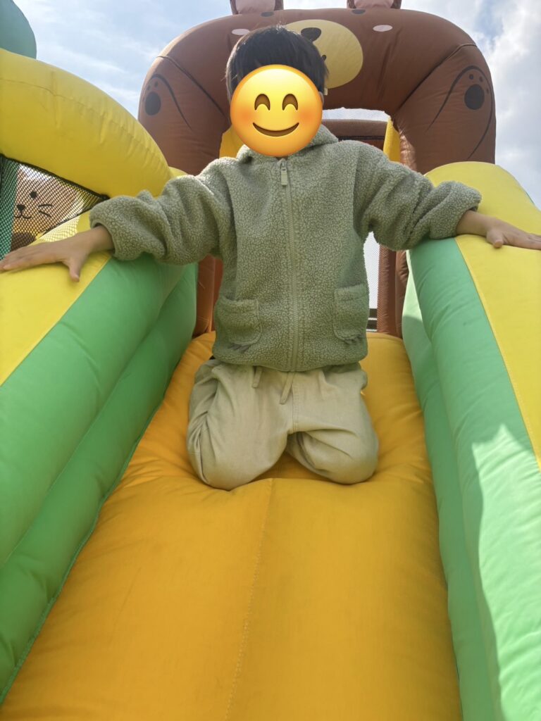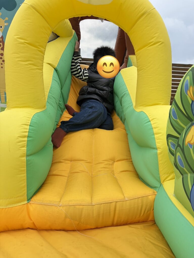 みなみんのトランポリンよりも大きいトランポリンで思いっきり跳んだり、エアー滑り台で何度も楽しみます😊