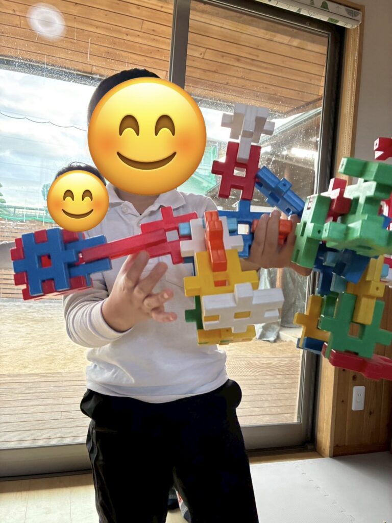 他にもニューブロックで大きな力作を作って遊んでいるお友だちもいましたよ!