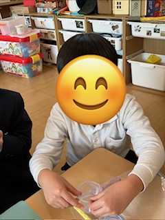昨日の集団活動では、輪っか飛ばしを作って遊びました!