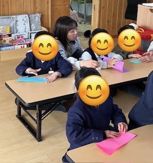 この蛇腹折りがなかなか難しかったですがみんな真剣にスタッフの話を聞いて上手に蛇腹折りをしていましたよ😊