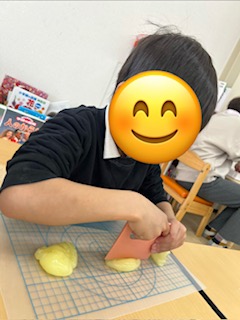 スライムでは麺のように細く切ったり、よ〜く伸ばしたスライムをクルクル丸めてクロワッサンを作ったりと、美味しそうな食べ物をたくさん完成させましたよ💕