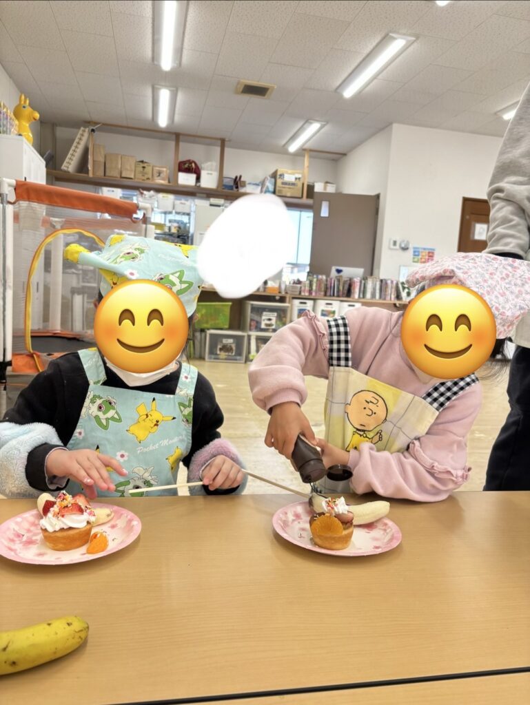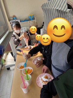 午後からのお楽しみ会では、ホワイトデーだったので、ホワイトデークッキングをしました🧁