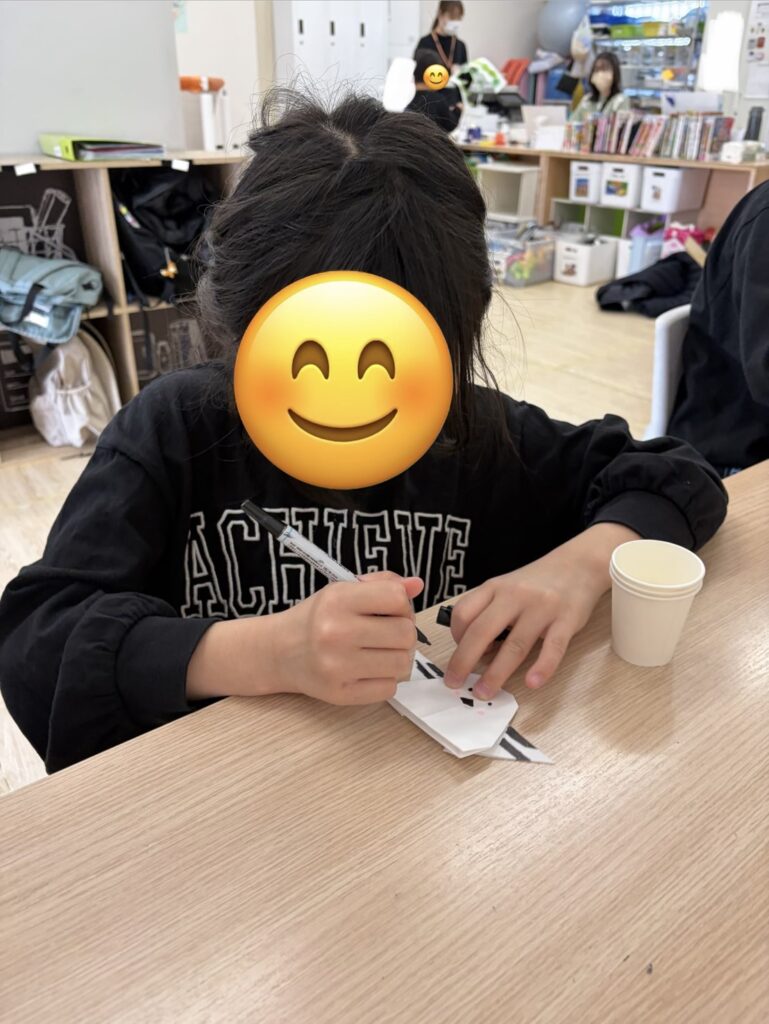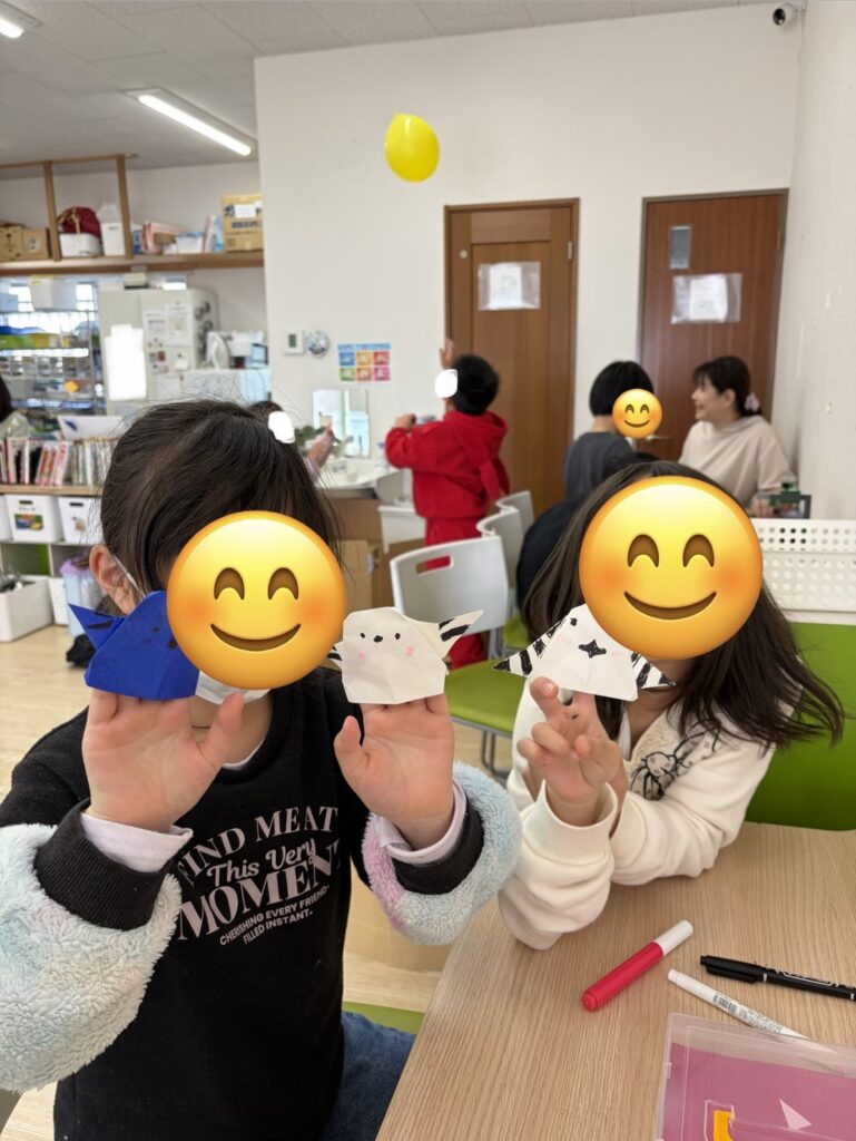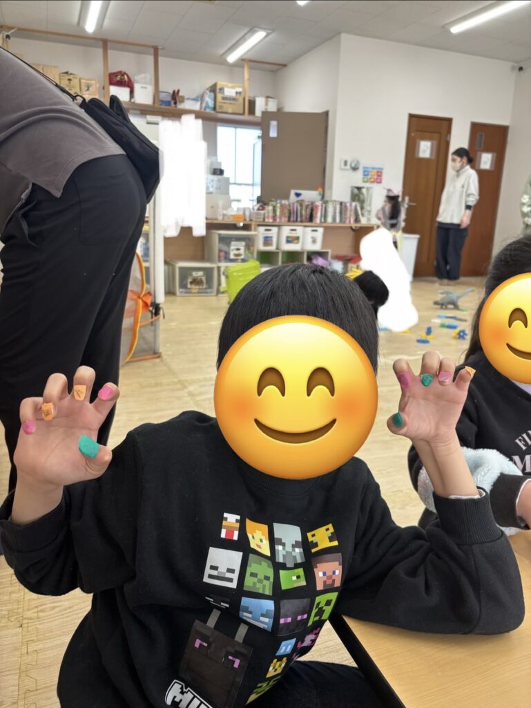 折り紙でシマエナガやお家を作って、ごっこ遊びをしたりカラフルなネイルをスタッフと作ったり、ネイルのプレゼントを作って楽しんでいる子が多くいました!