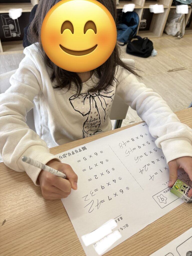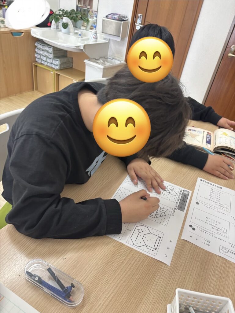 休日なので、みなみんプリントを頑張る子や前日に、することを決めていた学校の宿題を持って来て、集中して取り組みました!