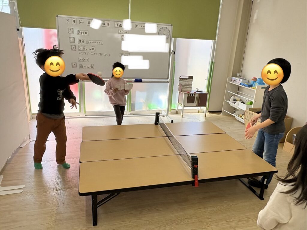 卓球でお友達と対決をしたり、レゴ・ニューブロックで楽しく遊びました✨