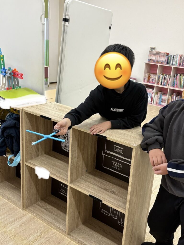 こちらは、手作り射的を楽しんでいますよ😆