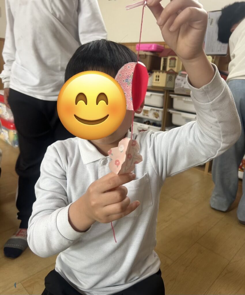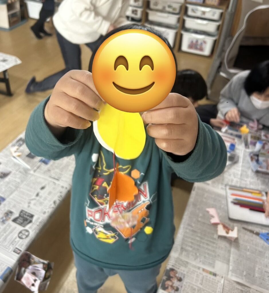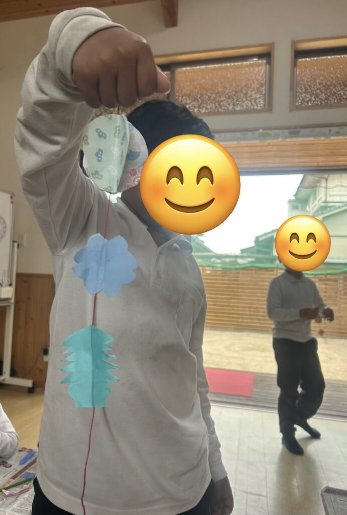 今日は折り紙を折ったり、はさみを使ったりして、丸や花型を作り糊をつけて仕上げていきましたよ⭐