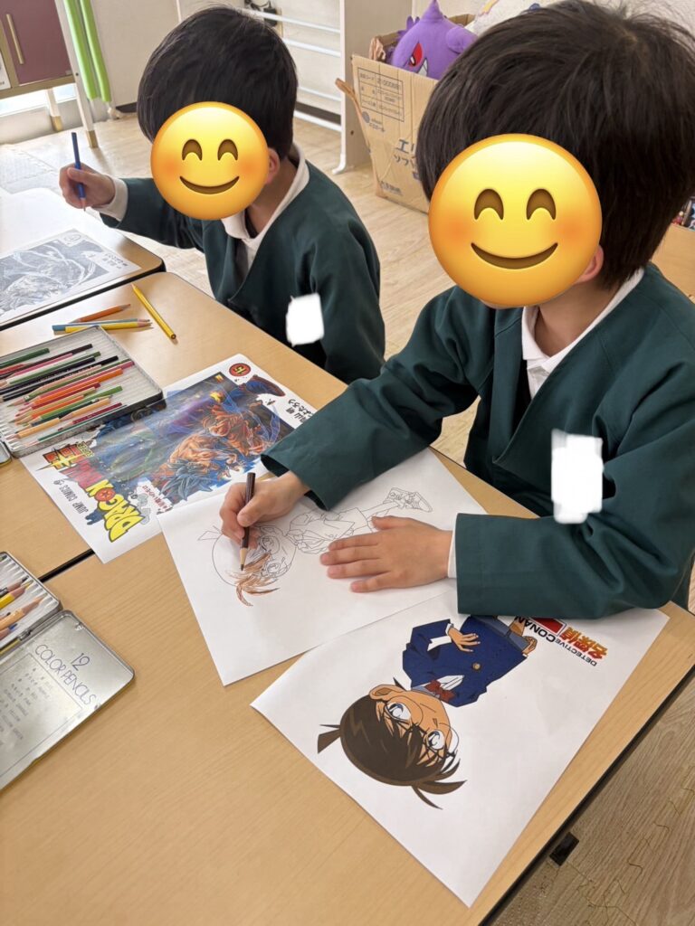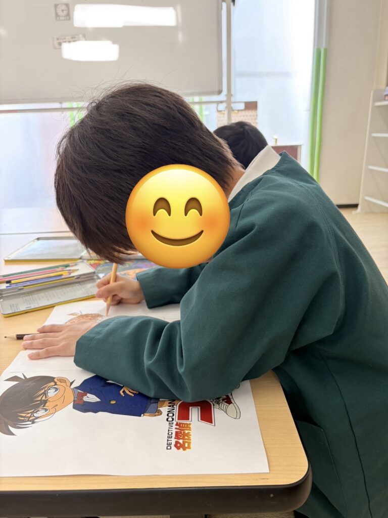⚪︎自分の好きなキャラクターのドラゴンボールやコナンのぬり絵をお手本を見ながら丁寧にぬっています🎨