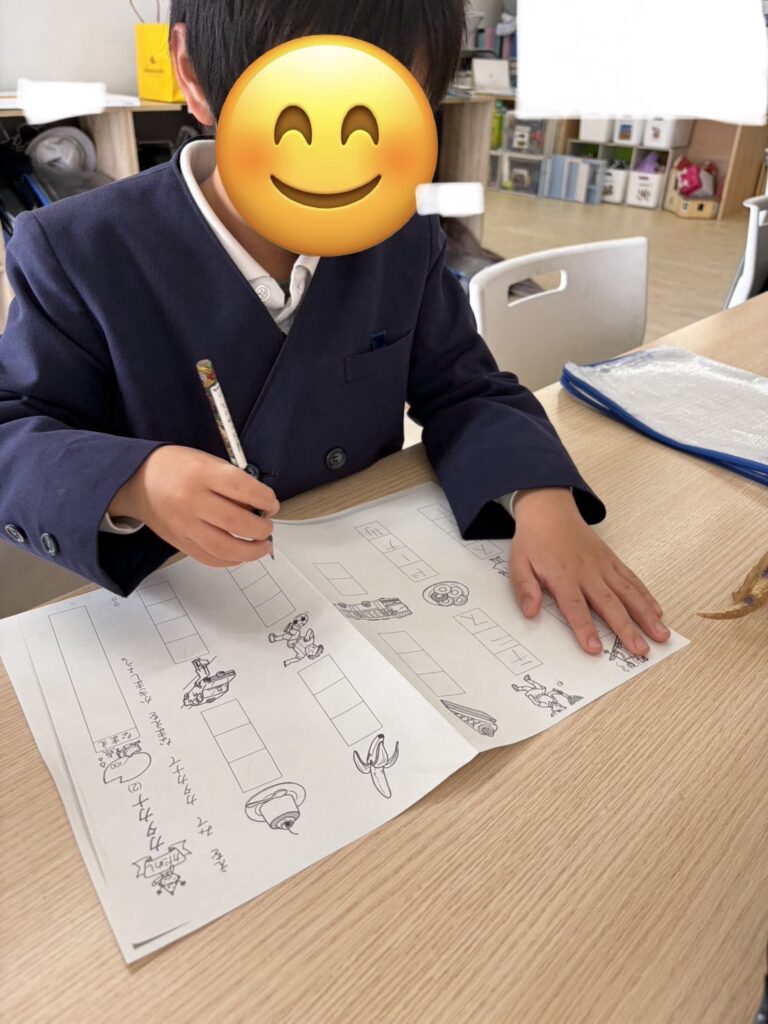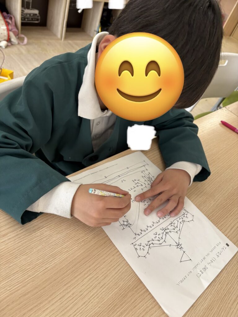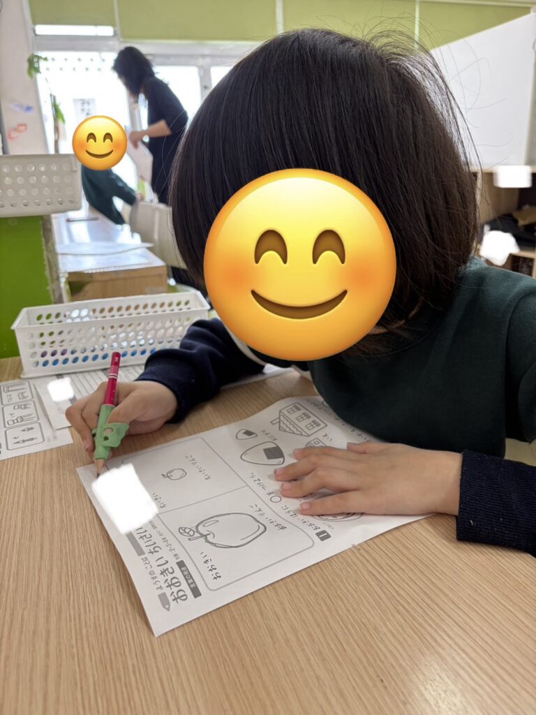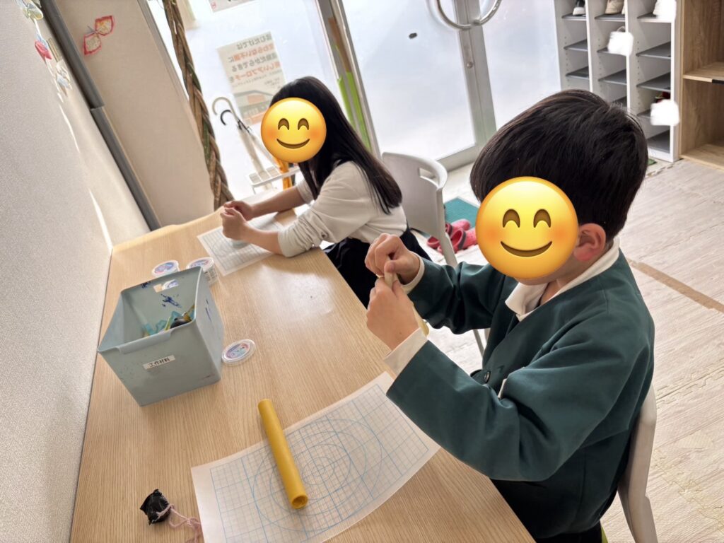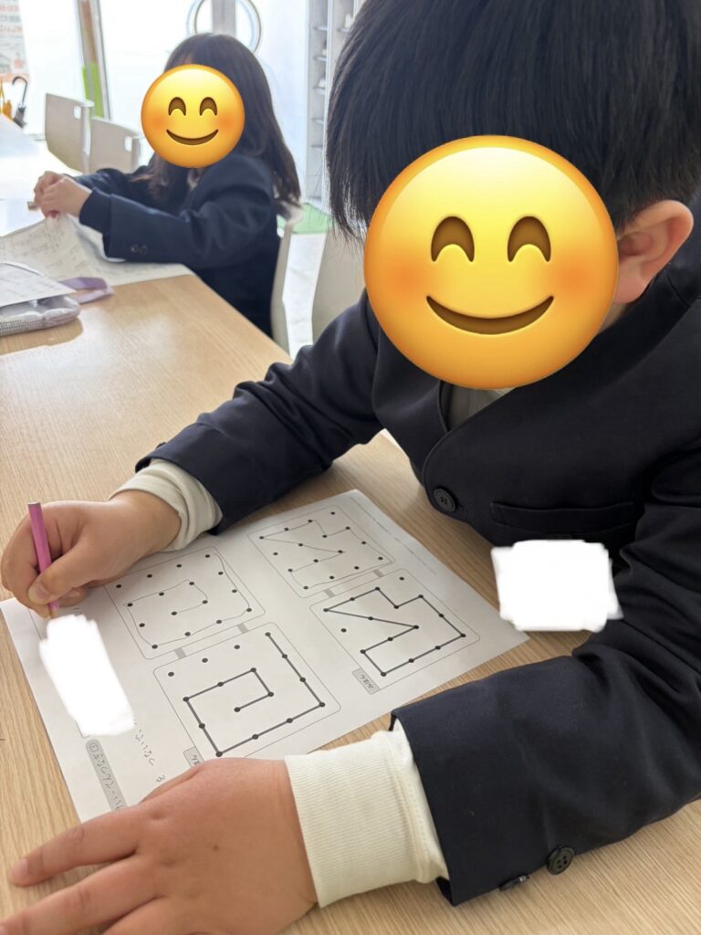 今日も元気に来所しています😊「今日は自由遊びだ〜。」「早く終わらせて⚪︎⚪︎して遊ぼう!」子どもたちは集中して課題に取りかかっています📝