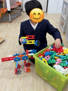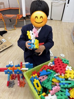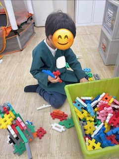 先を読む力、集中力が育ちます。ブロックでは大好きな恐竜を作っています😊