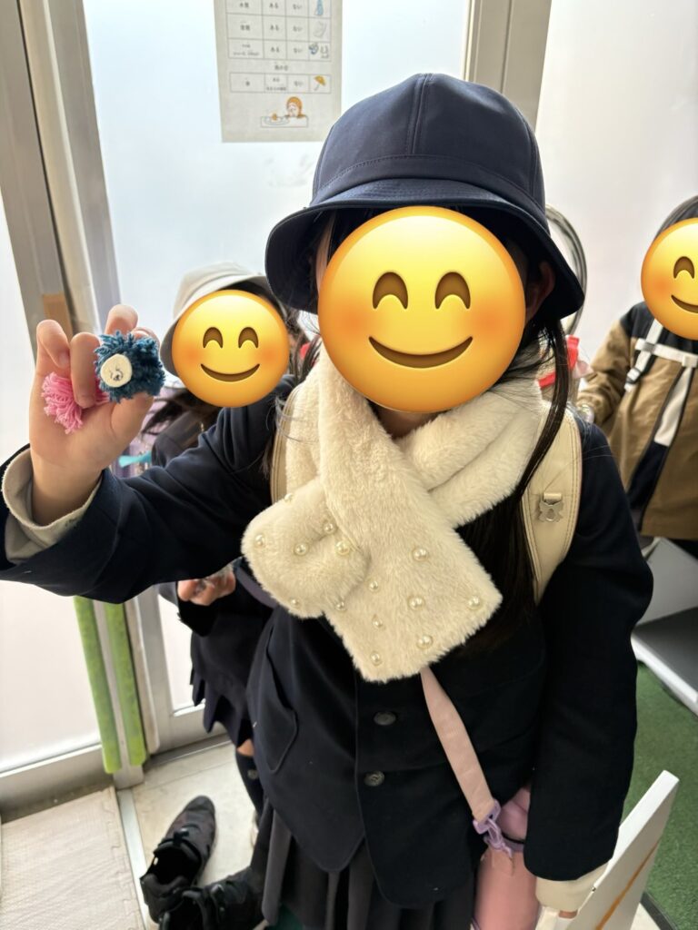 「まっくろくろすけみたい!」可愛い顔をつけていろいろな色のボンボンができました❣️