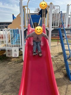 そして、昨日の自由に遊ぼうでは普段は室内やお庭で好きなことをお友だちと遊ぶのですが、この日はぽかぽか春の陽気だったので公園に行き思いっきり体を動かしました!