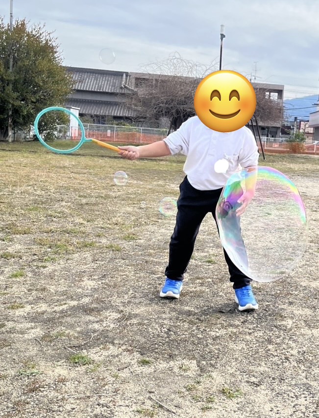 シャボン玉や滑り台、砂場やブランコをお友だちと誘い合って遊んでいましたよ!