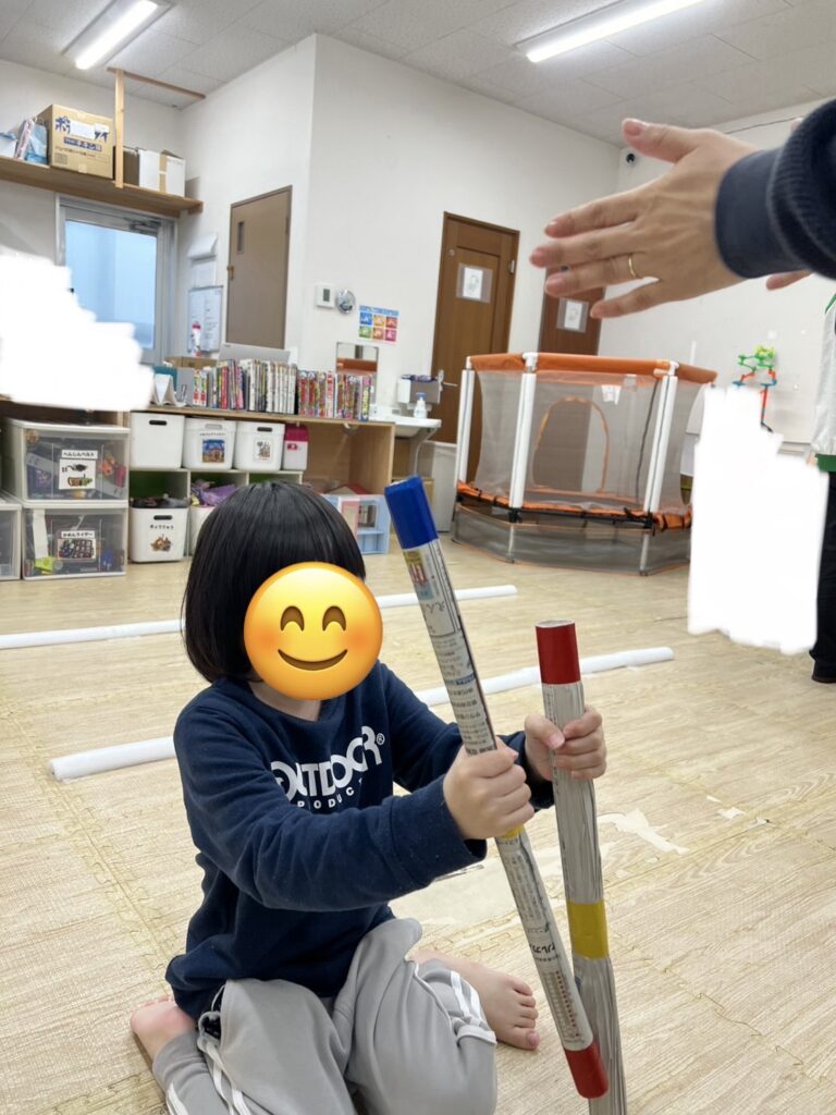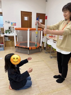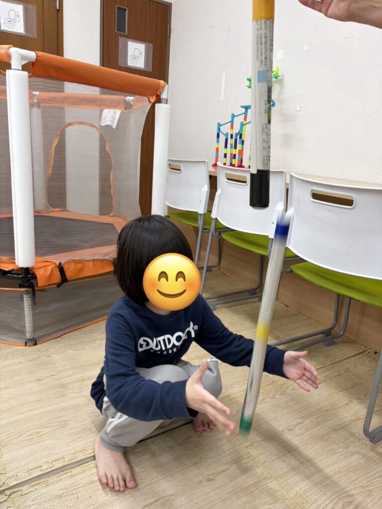 コグトレは動体視力を育むために、棒が床に着く前にキャッチできるか何度もチャレンジしました💪