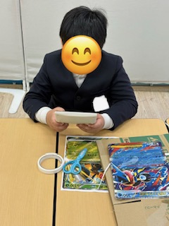 切り終えた紙を広げ、くり抜かれた形を見て星、四角と答える姿も見られました😆
