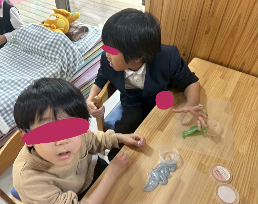 自由遊びでは最近のブームであるスライムやお医者さんごっこをして楽しんでいましたよ✨