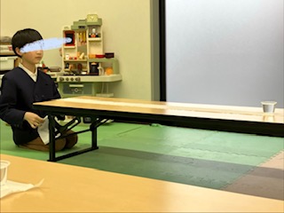机の上に長く伸ばした紙コップの上にカップを置き、落とさないようにそ~っと動かしていきます!