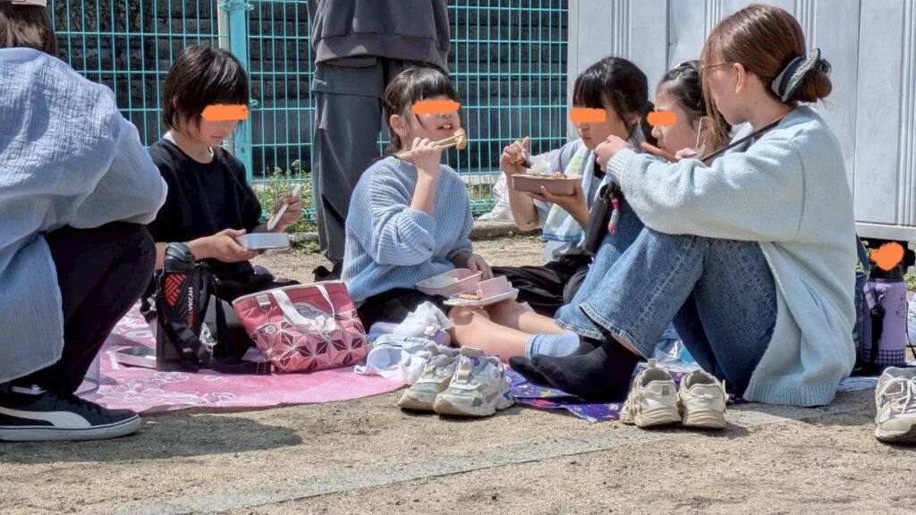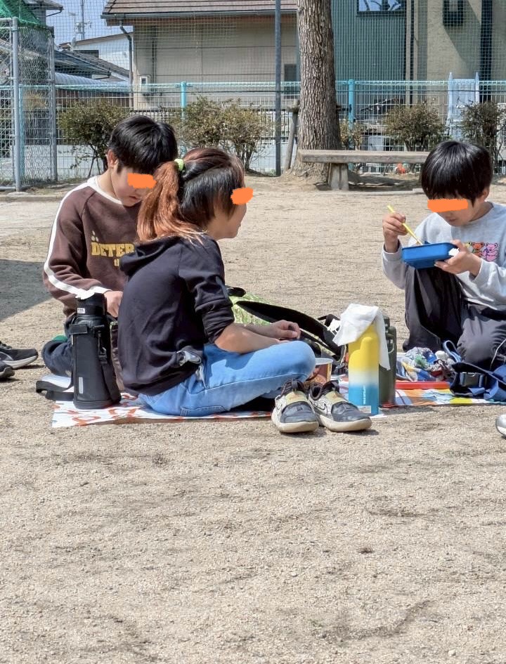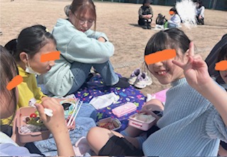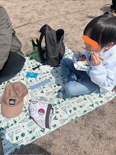 お弁当の時間は、シートを広げお友だちとの会話を楽しみながらいつもとは違う景色を堪能しました🎵