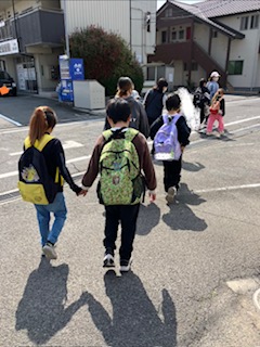 朝の会では、この日のメインイベント『ピクニックに行こう❣』のお約束確認と、持ち物確認を行い、いざ近くの公園へ出発です🎒
