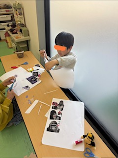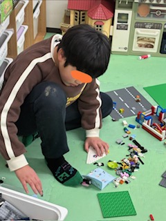 自由遊びでは、好きなキャラクターを印刷してもらい、紙に張り付け大好きな物を集めた1枚を作ったり、レゴで遊んだり♫