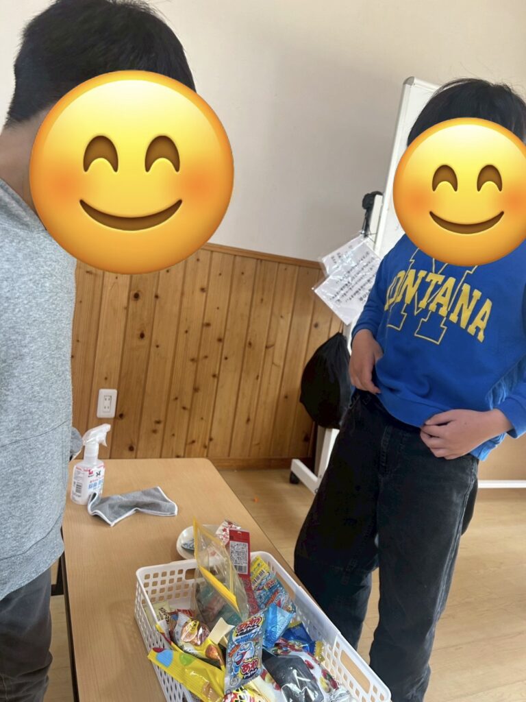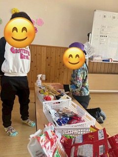 お店屋さんはお金の計算をしたり、あと何円分お菓子が買えるか教えてあげて、どの箱から選べばいいか教えてあげたりしていました!