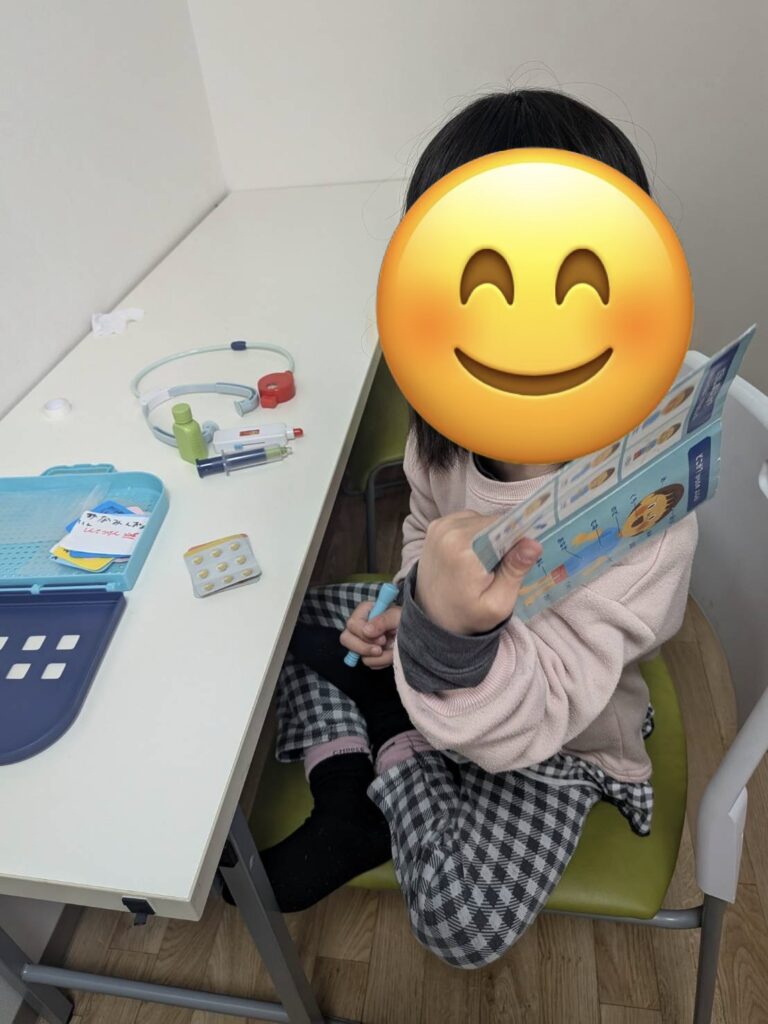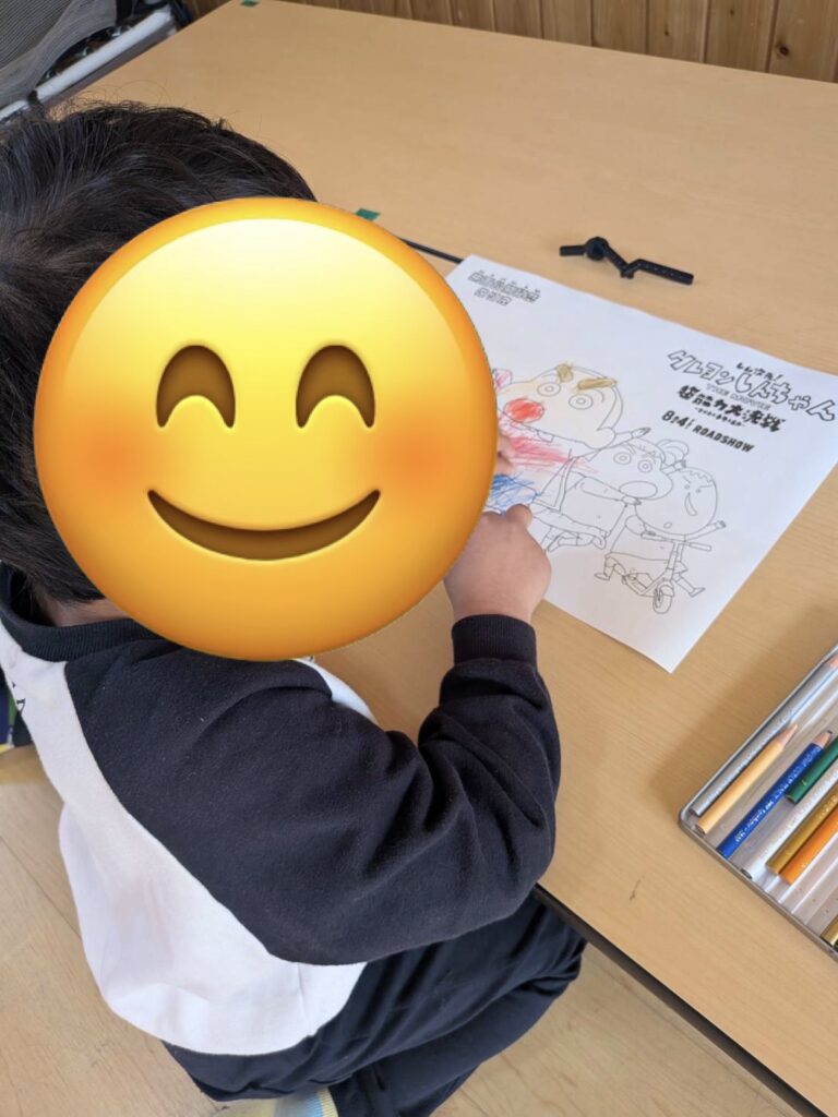 自由遊びでは、午後からお外へお出かけするので病院ごっこや塗り絵、レゴやニューブロックなど室内でする遊びを楽しんでいました!