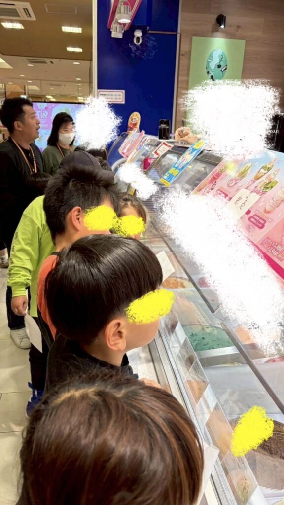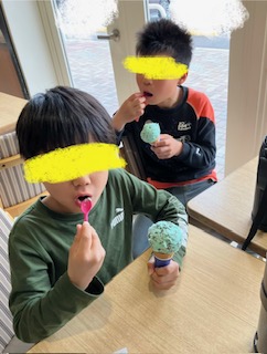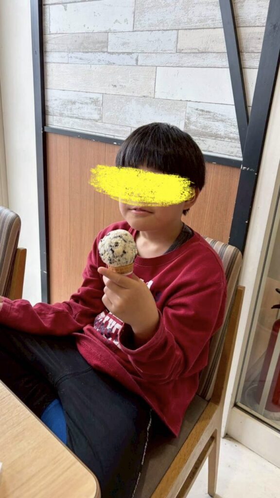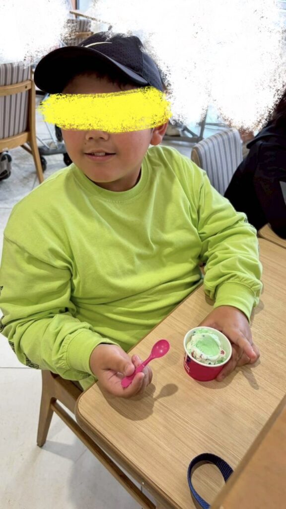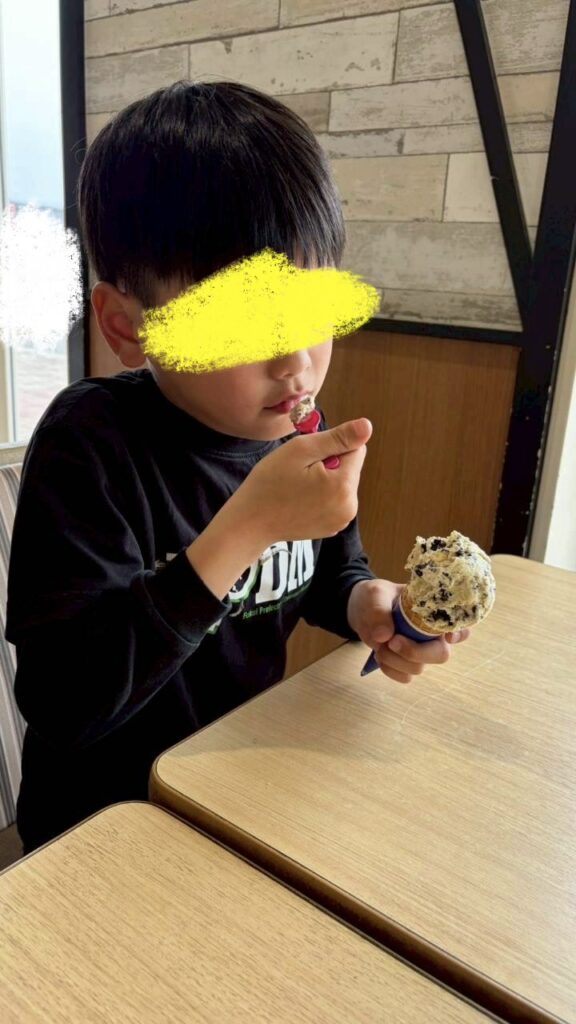 午後からはお待ちかねのサーティーワンのお店に出発!!他のお客さんもいるけれど静かに順番を待つことが出来ました♫自分で注文が出来たお友だちも恥ずかしくてスタッフに注文してもらったお友だちもアイスを受け取るとニコニコで食べましたよ😄