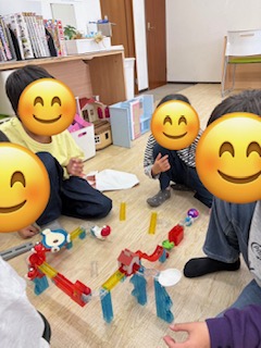 自由時間ではブロック、バランスボール、ニューブロック、ウノ、ベイブレード、粘土工作、ピタゴラスイッチをして過ごしました♪