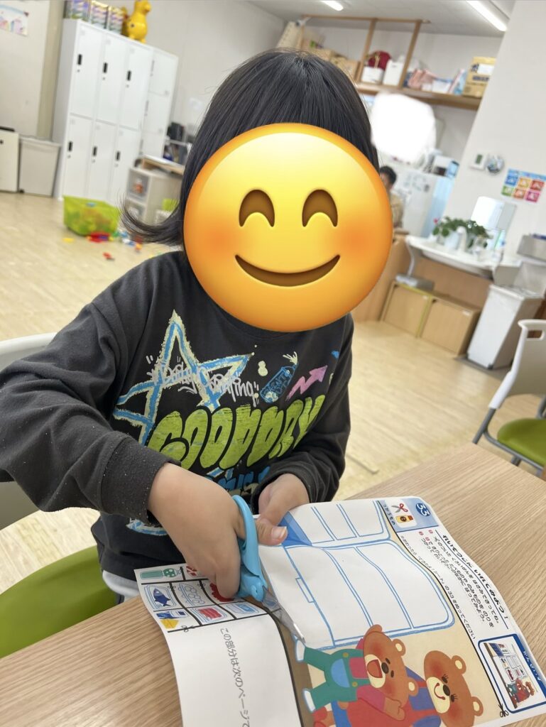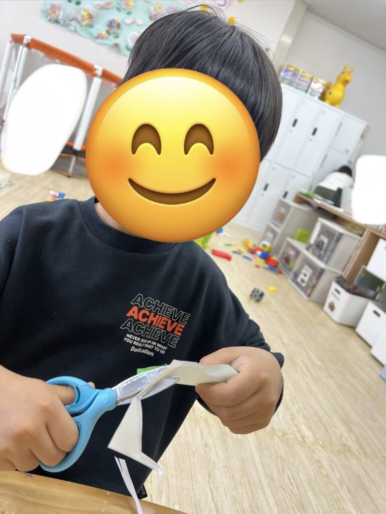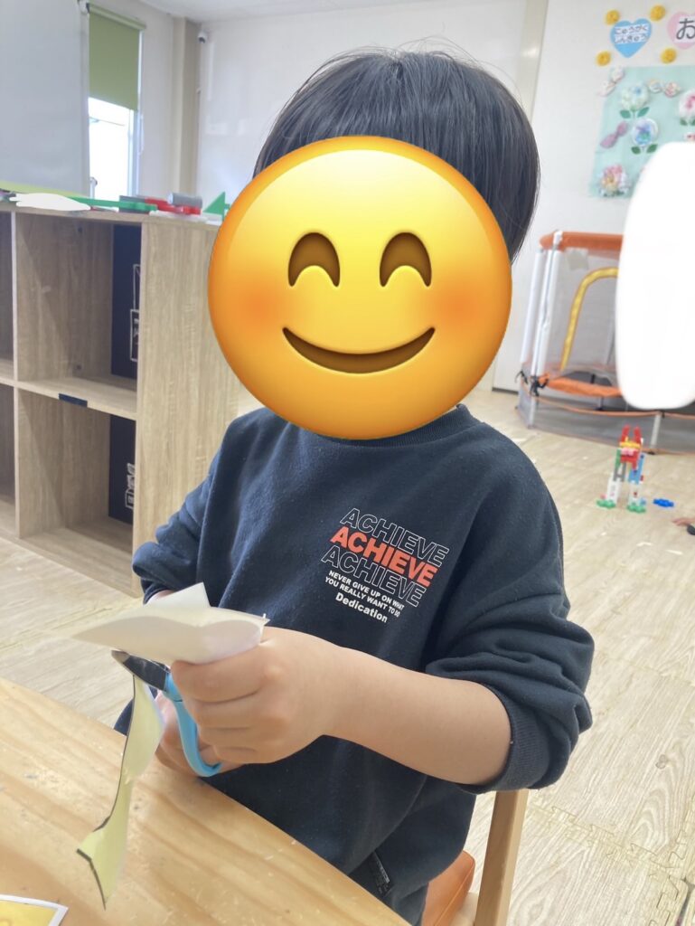 手先を使うハサミと糊の活動にしっかり集中して取り組む姿✨