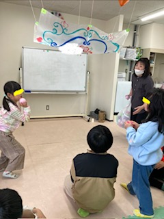 お楽しみ会では、『魔法のじゅうたん』というのを行いました。