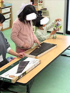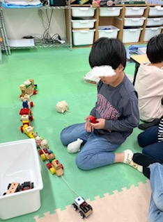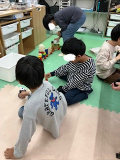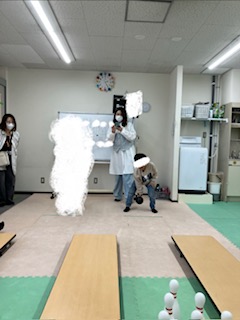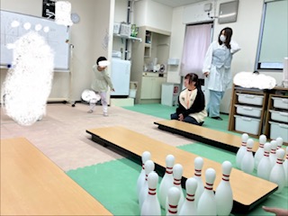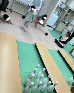 最初は静かに始まりましたが、球を投げてピンが倒れると盛り上がって、終わった後に「もう一回やろ!」と言った声が聞こえてきましたよ🤣様子を見ながら慎重に投げるお友だちもいれば、勢いよく投げるお友だちなど、いろんなお友だちがいましたよ😄