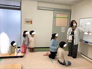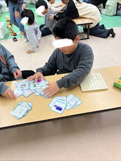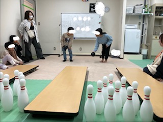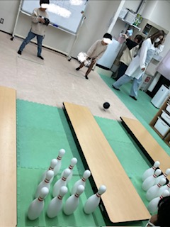 お楽しみ会では、ボーリング大会をしました。まずは説明をしっかり聞いて、チーム分けをしましたよ😋