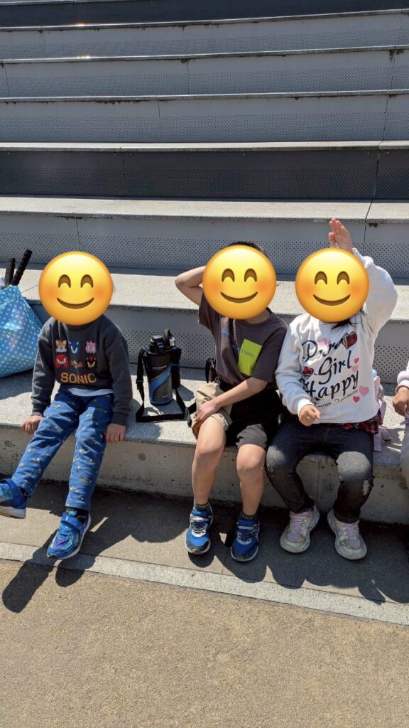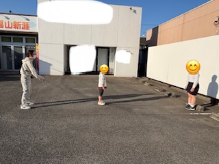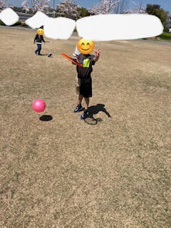 新1年生が朝から来てくれ、お天気が良かったので朝の会はエフピコアリーナへ行きました!