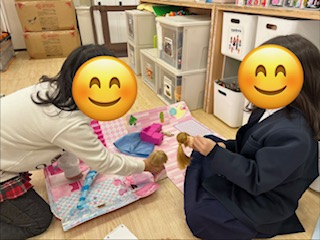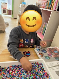 お友達と一緒におままごと、アイロンビーズ、トランプや戦隊玩具をして楽しむグループ✨