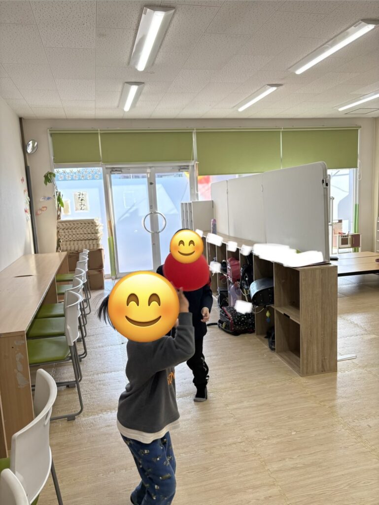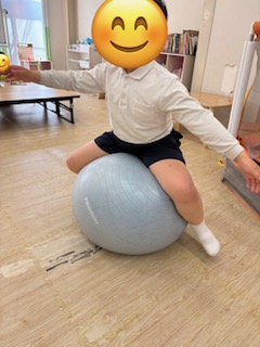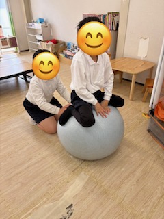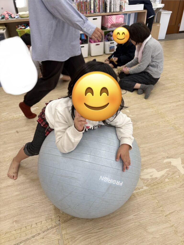 縄跳び、風船バレー、バランスボールで体を動かして遊ぶ子😆