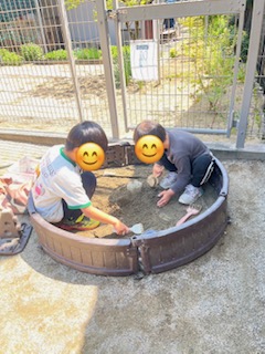 外ではボール遊びや鬼ごっこ、砂場遊びを楽しみ、室内ではご飯屋さんやお医者さんごっこ、バランスゲームなどに取り組みました⚽
