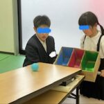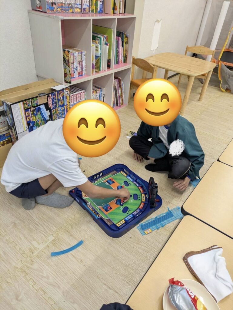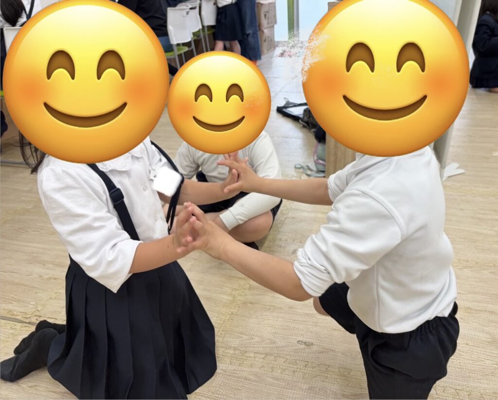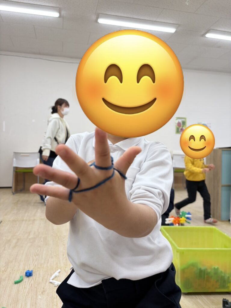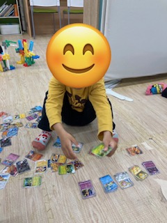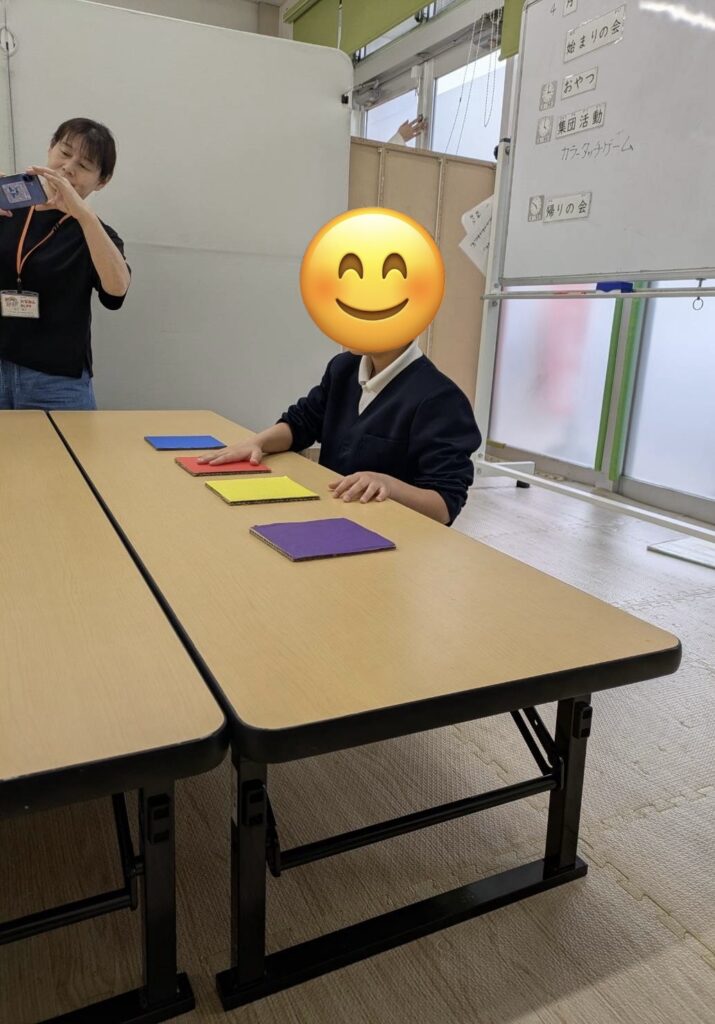 カラータッチゲームでは、4色の色紙を並べます。まずはスタッフの言った色【に】手を置きます。これはみんなバッチリできていましたよ😊次は少し難しくなりますがスタッフが言った色【以外】に手を置いてねというルールに変えました。するとあれ?となるお友達もいましたが間違えても怒ったり泣いたりもせず気を取り直して続けることができました💕