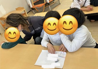 まずは、グループに分かれてそれぞれ「ちくちく言葉」「ふわふわ言葉」を紙に書いて発表してもらいました。