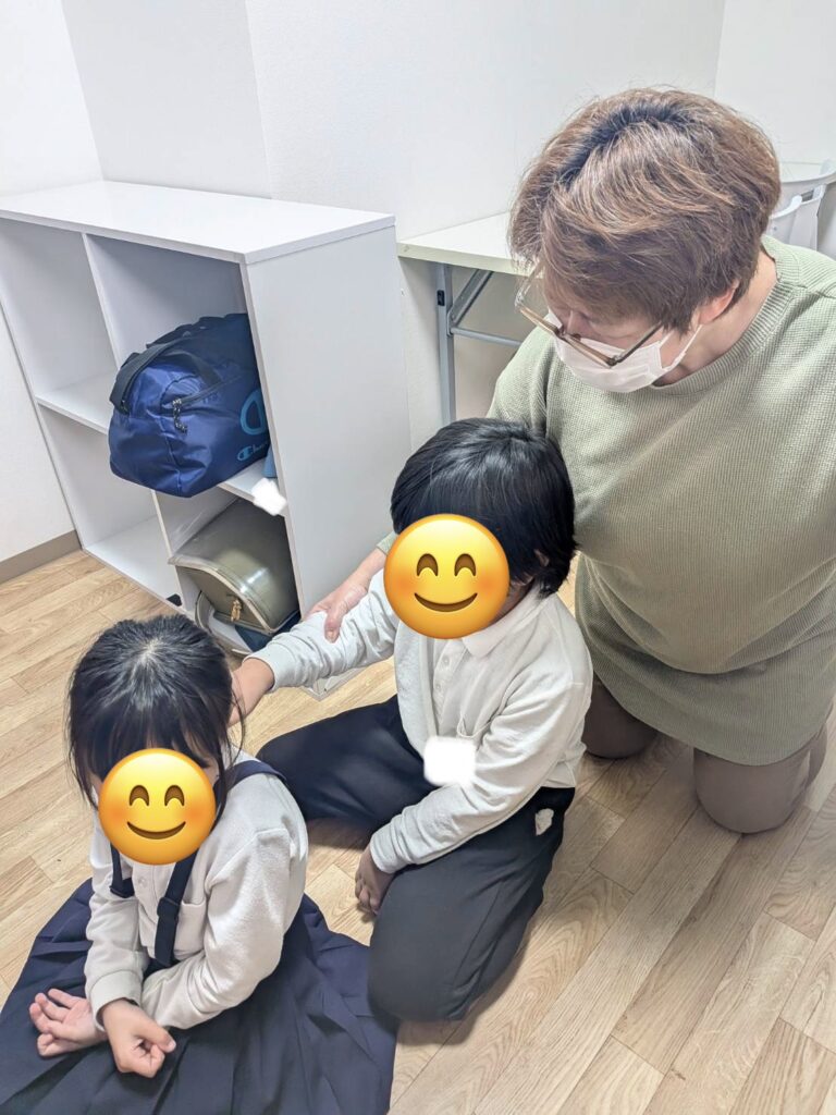 今回は、耳ではなく背中に指で文字を書いて伝えていきました。ちょっとくすぐったいな~😆となりながらも、どう書いたら伝わりやすいかを考えながらすることが出来ました!