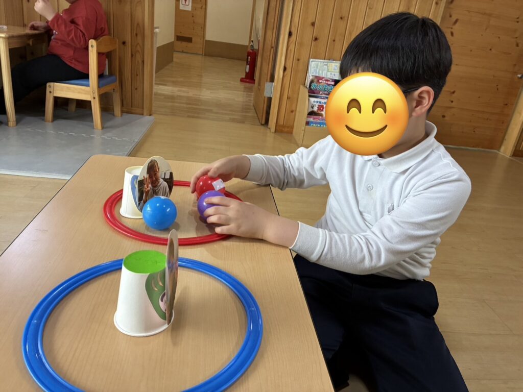 前回もやりましたが、好評だったのでやったことのないお友だちを中心に行いました。スタッフの名前を一文字ずつボールの中から探し出して、スタッフの顔写真のところへ。