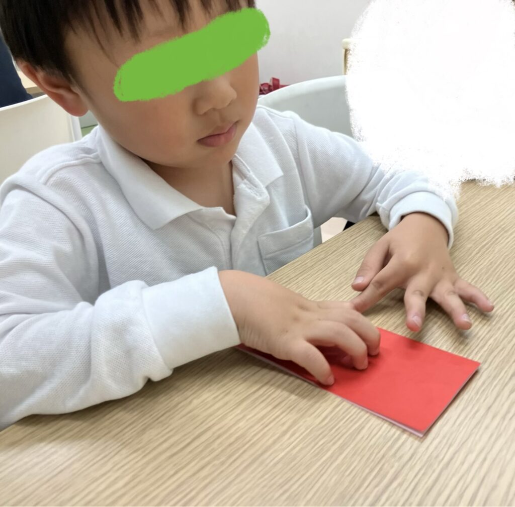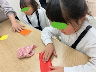 「角と角を揃えよう!」や「折線をしっかり付けて!」等、細かい作業も頑張っていましたよ🍀