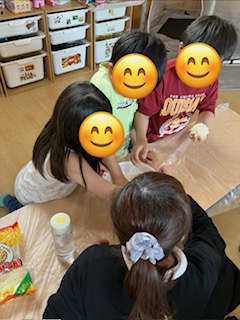 「パン粉粘土て食べられるの?」と興味津々な子どもたち😊