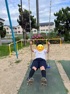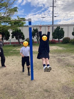 鉄棒にブラーンとぶら下がったり、ブランコに乗って楽しみました。