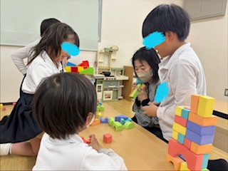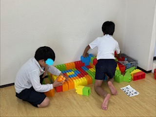 自由遊びの様子です。新しいブロックに興味津々で遊んでいましたよ💛